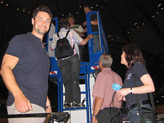 Rigging Service GmbH hat als Partner der Messe Frankfurt diesen Tag mit einigen Aktionen begleitet und in der Festhalle Aktionen installiert für die Besucher: einen Scherensteiger für die Fahrt unter die Kuppel der Festhalle, eine Flugwinde für die Höhenfahrt sowie eine Trackingschiene für die Fahrt quer durch die Festhalle Frankfurt.